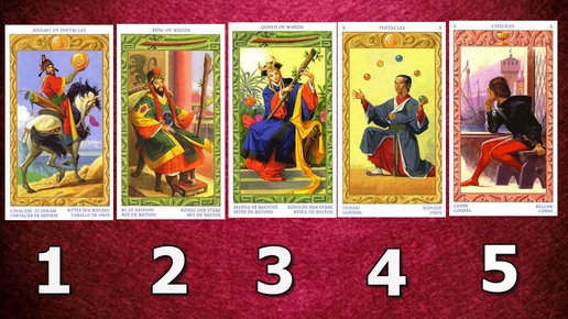 Для начала представьте этого человека, визуализируйте его образ. Задайте себе вопрос: «Что ему нравится во мне?» Затем выберите одну из предложенных карт. Сегодня я использую пять позиций карт, то есть вам предстоит выбрать из пяти вариантов.
