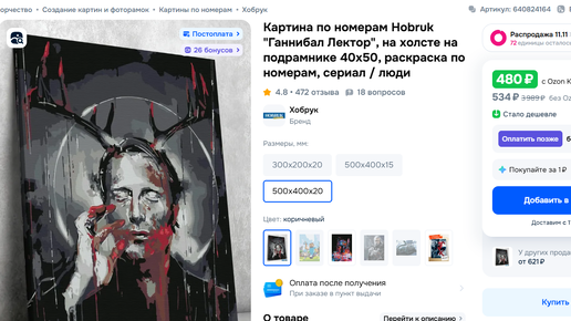 Обзор картины по номерам Hobruk "Ганнибал Лектор"