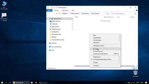Рассмотрим три варианта с помощью которых можно настроить автозапуск какой-либо программы при включении операционной системы. На примере Windows 10. Первый вариант заключается в перемещении ярлыка программы в папку автозагрузки. Для входа в папку автозагрузки на рабочем столе необходимо нажать сочетание клавишь Win+R и в окное «Выполнить» ввести: shell:startup или пройти по следующему пути C:\ Users\ Имя_пользователя\ AppData\ Roaming\ Microsoft\ Windows\ Start Menu\ Programs\ Startup Если перенести в папку автозагрузки не ярлык, а непосредственно файл ( будь то ...