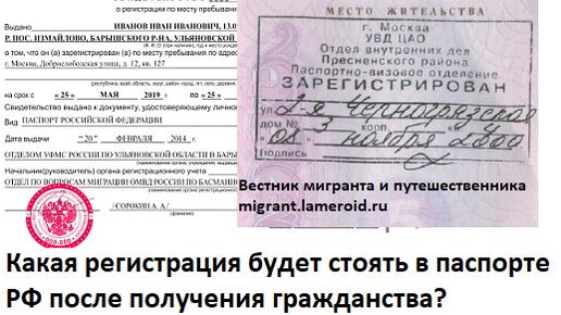 Какая прописка будет в паспорте РФ при получении российского гражданства?