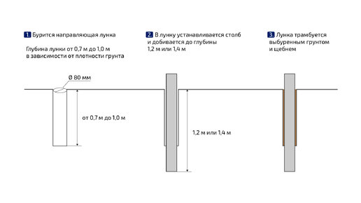 Установка столбов является важной частью процесса монтажа забора, так как от правильного выбора и установки столбов зависит устойчивость и долговечность всего забора. В данной статье мы рассмотрим четыре основных способа установки столбов, каждый из которых имеет свои особенности и подходит для разных типов грунта и погодных условий. Способ № 1 Бурозабивной. Самый дешевый и быстрый способ установки столбов для забора. При таком способе бурятся лунки под столбы, столб опускается в лунку и добивается до необходимой глубины кувалдой...