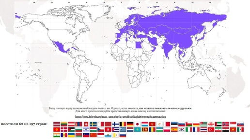 Страны, где я была на карте мира  Что-то казалось так много - 62 страны. А на карту посмотришь и понимаешь, как мало я еще повидала...   И сколько же еще осталось неисследованного!!!  У-хууу! Великие открытия...
