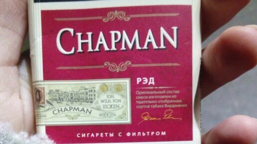 И продолжается наша небольшая подборка сигарет европейского производства. На этот раз это немецкие сигареты Chapman Red. А для тех, кто хочет спросить почему сразу не был сделан обзор и на Чапман Ред и на Чапман Браун, скажу, купил я Чапман Ред только сегодня). Еще скажу, что скоро будет обзор на немецкие сигареты Харвест и Пепе, а также английский Данхил. Что же, теперь поехали. Итак, Чапман Ред. Название не совсем подходит к сигаретам, так Ред обычно написано на крепких сортах, это просто со вкусом вишни, видимо, название связано с цветом вишни, но это все лирика...