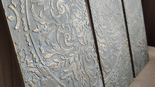 Наверняка многие заказывали распил фанеры под определённые размеры. И как правило, после такого распила остаются обрезки. Если они достаточно широкие, то их и выбросить жаль и применение не всегда находится. Вот и у меня после последнего заказа остались шикарные обрезки. А я хомяк, ничего не выбрасываю, всё складирую. Но собираю всё не просто так, а нахожу всегда идеи, как куда применять оставшийся материал. Поэтому сегодня на примере трёх отрезков фанеры, покажу как я работаю с шпатлевкой и как создаю объемным панно с трафаретами...