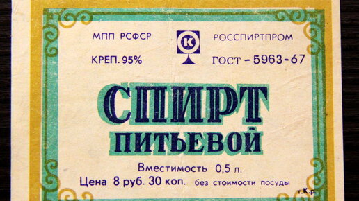 М. Булгаков. «Мастер и Маргарита» «Питьевой спирт» - ушедшее словосочетание из нашего лексикона. А ведь до тех страшных времен, когда в Союзе начали борьбу с пьянством, спирт можно было купить в обычном вино-водочном. И надо сказать не то чтобы очень дорого. Когда сухой закон отменили появился "Рояль", но это уже другая история. Питьевой то он питьевой, но просто так пить его неразбавленным могут только бесстрашные и сильно подготовленные люди...