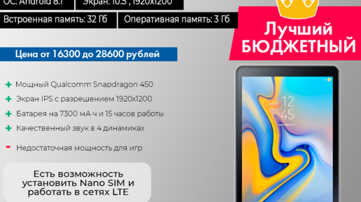 Компания Samsung выпускает смартфоны, бытовую технику, а также планшеты. Линейка Galaxy отличается качественными и функциональными моделями. Ценовой диапазон достаточно сильно разнится: на стоимость влияют технические параметры конкретной модели, наличие новых современных технологий. Мы решили рассмотреть лучшие планшеты Самсунг 2019 и 2020 года. Разобраться во всех тонкостях выбора и составить рейтинг нам помогал Виталий Коростелев, консультант магазина «Mobi». Выбрать подходящую модель из всего представленного производителем многообразия бывает затруднительно...