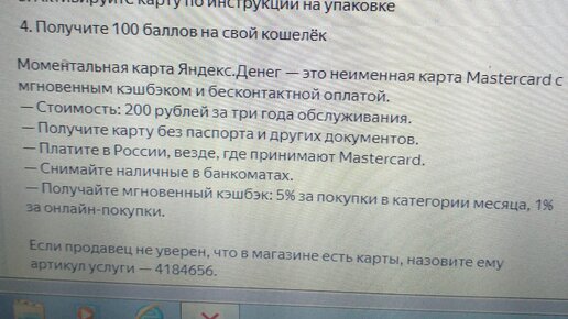 Здравствуйте! О том, как получить баллы в Яндекс.Деньги. я рассказывала в первой части статьи. Дочитайте до конца, там будет моя реферальная ссылка, по которой Вы получите 100 баллов, при соблюдении всех условий. В Яндекс.Деньги. есть два вида карт - пластиковая и виртуальная, и та, и другая будут привязаны к Вашему Яндекс-кошельку. Виртуальная карта выдается буквально за 5 секунд, нужно просто нажать на сайте кнопочку "получить карту", потом ввести одноразовый пароль, который придет Вам на указанный телефон и всё...