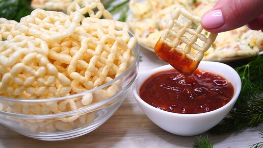 Для начала займемся приготовлением снеков. Я покупаю вот такие полуфабрикаты для снеков, так они выглядят внутри. В сотейник или глубокую сковороду наливаем растительное масло, так, чтобы готовые снеки могли плавать масли. Разогреваем масло и...