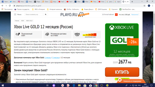 Где купить Xbox Live Gold недорого.