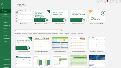 Не все мы знаем о том, что разработчики программы excel о нас позаботились и создали множество готовых шаблонов на различные случаи жизни. Для того, чтобы открыть перечень шаблонов, нам необходимо открыть программу excel, открыть раздел "Файл" и далее выбрать "Создать": Далее мы можем выбрать категорию шаблонов, которая нас интересует, либо начать вводить наименование шаблона в поисковую строку. Для примера я выберу категорию календари, т.к. эта статья написана в конце 2019 года и сейчас актуально планировать 2020 год...