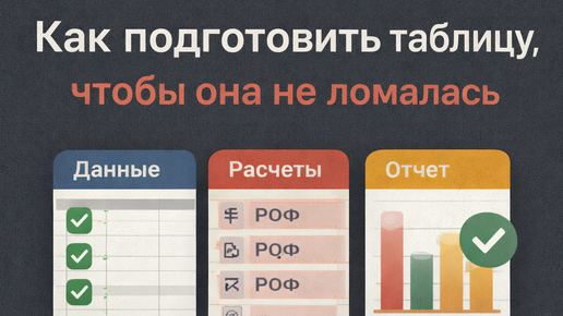 Как подготовить таблицу, чтобы она не ломалась (даже если в ней работают другие люди). Простая и надёжная структура таблицы Excel, которая не разваливается при правках, копировании и совместной работе. Не из-за Excel. И не из-за «кривых рук». А потому что таблицу сразу делают неправильно, а потом пытаются чинить формулами. Типичная картина:
