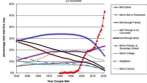 Как люди знакомятся? Ещё полвека назад ответ был прост: работа, учёба, друзья, семья или соседи. Сегодня у нас есть десятки приложений для знакомств и возможность найти партнёра, не выходя из дома. Но как эти изменения влияют на отношения? Что говорят исследования в США и России? И почему психологи советуют не забывать о простых способах знакомства? В Америке с 2009 года проходит главное исследование на эту тему - «How Couples Meet and Stay Together» . Социологи Стэнфордского университета следят за одними и теми же людьми годами, чтобы понять, как развиваются их отношения...