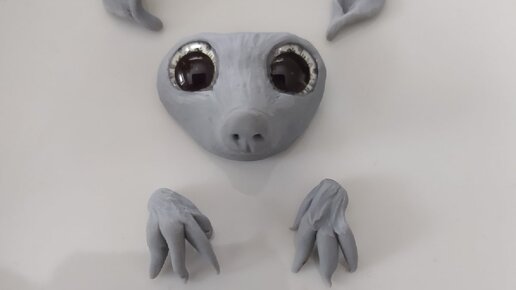 Опоссумы мне нравятся давно, я из-за этого даже хорька завела (купить живого опоссума в России нереально, а экспортировать из других стран почти нереально, а живут они всего год-полтора). Хорек правда не опоссум, да и лимит на живых животных у меня давно исчерпан, потому я решила сделать игрушку в смешанной технике. Планировался няшный примитивчик. Сначала я слепила вот такую голову. Потом уши и лапки к ней. Подумав и посмотрев фото, добавила пальцев и подушечек на лапы и ширины ушей. Потом покрасила...