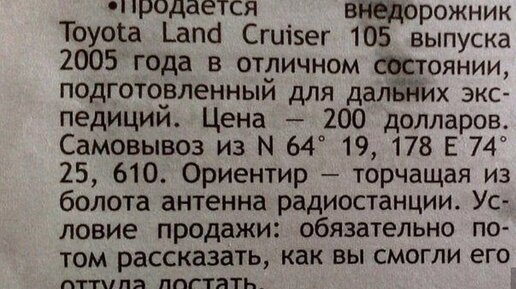 Фотографии смешных объявлений о продаже автомобилей.