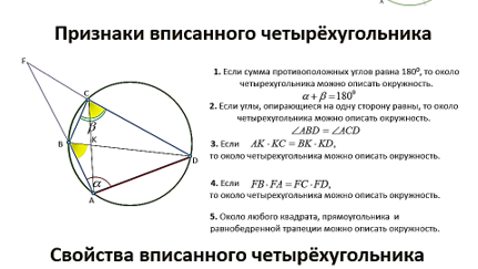 "МАГиЯ" 679 читали · 3 года назадПодписатьсяГотовимся к ОГЭ и ЕГЭ. Признаки и свойства описанной окружности около четырёхугольника.