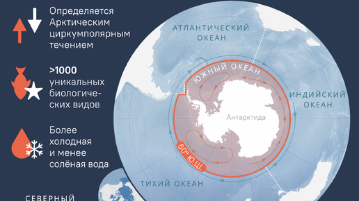 Признано существование пятого океана на Земле, называемого Южным. Начиная с 8 июня 2021 года Национальное географическое общество США начнет отмечать его на картах. Рассказываем, что заставило ученых поменять наши знания о географии. Что такое Южный океан и где он находится Южный океан — это совокупность южных частей Тихого, Атлантического и Индийского океанов, окружающих Антарктиду. Площадь Южного океана можно определять по океанологическому признаку: как линию схождения холодных антарктических течений с более теплыми водами трех океанов...