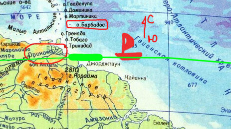 В своём романе Робинзон Крузо автор Даниэль Дефо дал читателям несколько подсказок по поводу того, где находится тот самый необитаемый остров, на котором Робинзон провел 28 лет, 3 месяца и 19 дней. Вот, что писал Робинзон в своём дневнике. Отрывок первый: «Мы были теперь недалеко от берегов Гвианы... Капитан спросил моего совета, куда нам взять курс... Рассмотрев карту берегов Америки, мы пришли к заключению, что до самых Карибских островов не встретим ни одной населенной страны. Поэтому мы решили держать курс на Барбадос...
