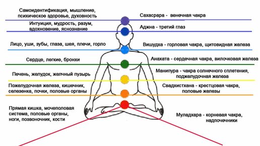 Чакры Это энергетические центры организма. Они отвечают за многие функции нашего организма и личности. Чакры и где они находятся 1. Муладхара. Расположена у основания позвоночника с его внешней стороны. Элемент: земля. Имеет четыре тонких лепестка. Качества муладхары: невинность, чистота, целомудрие, мудрость, спонтанное (как у ребенка) знание Истины. Связана с половыми органами и органами выделения. Проблемы в этом центре вызывает: моральная нечистоплотность, слишком интенсивная или извращенная...