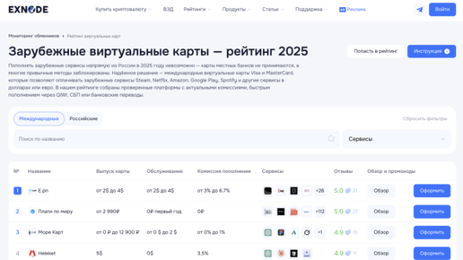 Виртуальная карта Виза — это рабочий инструмент для тех, кто устал от отказов при оплате зарубежных сервисов. Подписки на нейросети, профессиональный софт, онлайн-покупки за границей — все это требует международного платежного средства, которое российские банки сейчас не выдают. Выход — оформить виртуальную карту Виза через специализированные сервисы: без визита в банк, без бумажной волокиты, с моментальным выпуском. Мониторинг виртуальных карт Exnode собрал проверенные площадки с актуальными условиями...