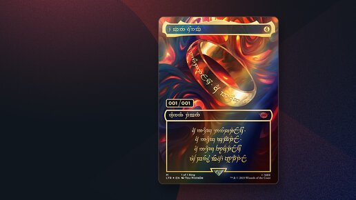 В прошедшем марте для Magic: The Gathering представили уникальную карту в рамках кроссовера "Властелин колец: Сказания Средиземья". Тот счастливчик, которому она попадется, сможет продать ее за $1 миллион. Эта карта Magic буквально неповторима. Будет напечатана всего одна копия карты "Кольцо 1/1" — как её называют. После ее аккуратно кладут в коллекционный бустер "Властелин колец: Сказания Средиземья" на английском языке и отправят на полки. Это означает, что тот, кто найдет карту, станет единственным владельцем этой карты на всей планете...