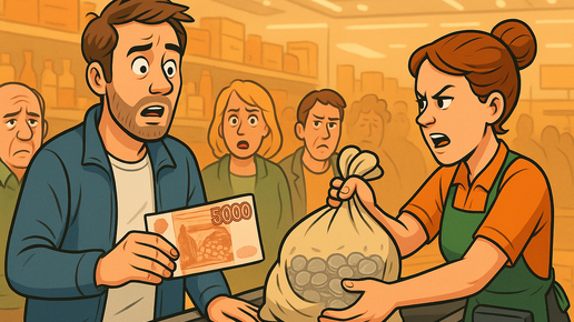 Вы замечали, как в магазинах вспыхивают тихие войны? Одни вежливо выбирают, другие решительно вытаскивают из кошелька новенькую пятитысячную купюру — и начинается веселье. И где-то в углу продавец уже морально готовится к затяжной битве за каждую мелочь... С формальной точки зрения покупатель прав.