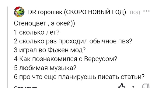 Ну кароч, недавно сделал пост с просьбой накидать вопросов. "Взяли интервью" только 2 человека. Ну ладно. Вопросы от Ros Cruz 1. Компьютер или спортивные игры. Компа у меня нет) но на спорт меня не тянет) 2. Майнкрафт или амонг ас. Даже не знаю. Но Майн уже под надоел. А в амонге в принципе норм. Хотя в обе игры я играю редко. Ну, думаю амонг ас получше будет) 3. Бедрок или Джава. Как я говорил, компа у меня нет. Так что бедрок. 4. Поход или игра дома. Нуу, в поход/путешествие ходим редко. Так по себе, мне нравятся различные настольные игры...