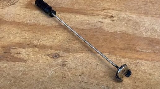 Рассмотрим способ изготовления самодельного гибкого магнитного ключа. С помощью такой самоделки удобно откручивать гайки к которым трудно подлезть. Для изготовления нам понадобится вот такая шайба и отрезок шпильки с гайками. Располагаем детали как показано на фото и аккуратно привариваем гайки к шайбе. Соблюдайте технику безопасности при работе со сварочным аппаратом. Далее нам понадобится вот такой гибкий стержень. Его необходимо приварить к гайке. Выполните этот шаг очень аккуратно не повредив гайку и ее резьбу...