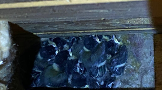 Свила гнездо, высидела яйца, вырастила птенцов: жизнь синицы внутри скворечника за две минуты