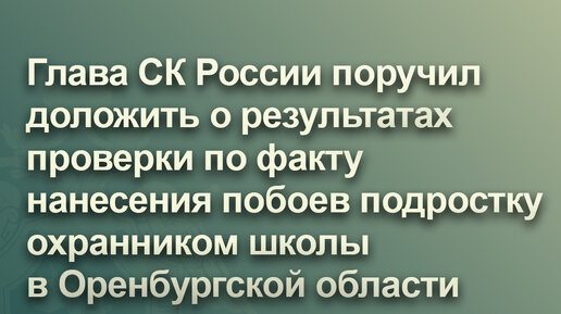 Глава СК России поручил доложить о результатах проверки по факту нанесения побоев подростку охранником школы в Оренбургской области