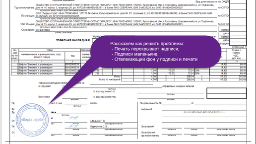 Прозрачная подпись и печать для 1С
