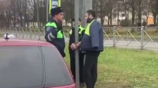 Сотрудник ДПС не стерпел хамства приезжего мужчины с бородой и пристегнул его наручниками к столбу