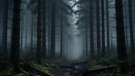 Тёмные силуэты мелькнули среди деревьев и бесследно растворились в клочьях тумана, будто их и не было. Воздух стоял густой, пропитанный запахом прелой листвы и сырости — типичный октябрьский вечер в этом глухом лесу. Мужчина зябко поёжился, натянул воротник куртки повыше и невольно ускорил шаг. Стало не по себе —словно кто‑то невидимый следил за ним из чащи. Он снова зашагал по узкой тропе, вслушиваясь в ночные звуки. Где‑то вдалеке ухала сова, шелестела листва, а под ногами то и дело хрустели сухие ветки...