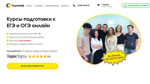 Мы собрали лучшие курсы в Самаре, которые помогают школьникам получить высокий балл на ЕГЭ в 2025 году. Средняя оценка: 4,9.
