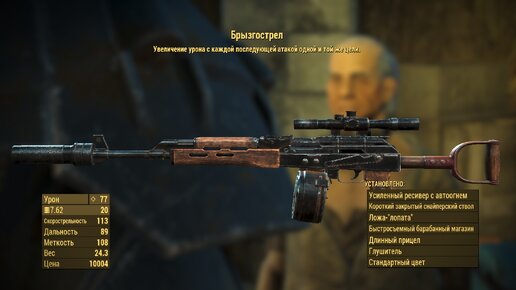 Самое время разбирать игру спустя 5 лет после её релиза и 2,5 прохождения. Казалось бы, что выбирать? 2 автомата, разные названия, разные дефолтные окраски, разная цена, но одинаковое легендарное свойство. Халявщики презирают богачей и наоборот. И я хочу перетянуть одеяло. Почему я настоятельно рекомендую покупать Брызгострел, а не грубить Мэйсону и получить ЧКРП. Стоковое состояние Брызгострел продаётся уже с самым мощным авторесивером, быстросъёмным барабанным магазином, ложей, аналогичной лучшей на автомате и глушителем...