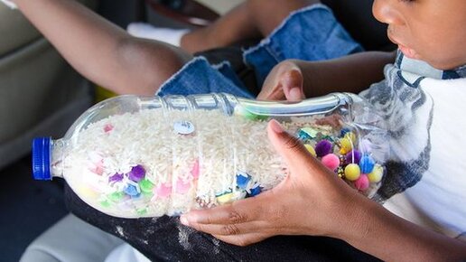 Лето - пора отпусков и путешествий. И независимо от того, на чем вы с семьей путешествуете - на своей ли машине, в автобусе, поезде или самолете, проблема всегда одна - чем занять детей? Мы собрали идеи со всего интернета, как родители выкручиваются и чем усмиряют детей, особенно в долгой поездке. Да, гаджеты тоже берут на самый-самый тяжелый случай, когда все остальное уже перепробовано. 1|| Банка-искалка Пластиковую прозрачную бутылку можно наполнить разными мелкими игрушками, пуговицами, безделушками и засыпать рисом или пшеном...