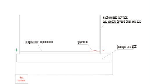 Доброго времени суток Уважаемый читатель. Хочу поделиться простым устройством, которое поможет нарезать пенопласт различной толщины. Итак, вот схематично показано что у нас будет. За основу возьмем лист фанеры или ДСП. Сами выбирайте какой толщины и какого размера у вас будет столешница. На рисунке я использовал 10 мм фанеру. По краям необходимо просверлить отверстия, и вставить в них прутки. Я использовал карбоновые прутки. У Вас нет карбоновых прутков, тогда используйте любой диэлектрический материал, кроме дерева...