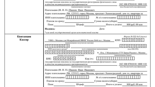 Заполнение квитанции на оплату госпошлины за регистрацию ИП