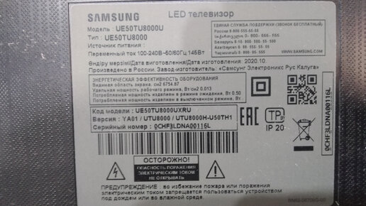 Ремонт матрицы Samsung UE50TU8000U (телевизор не включается)