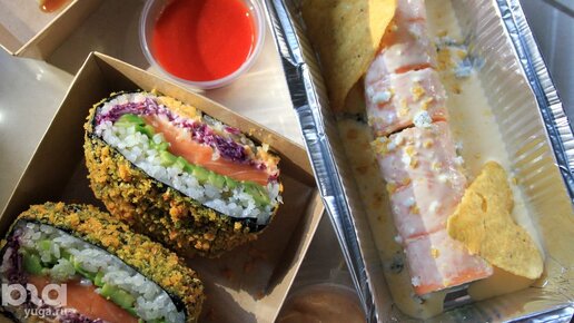 Заказать роллы — беспроигрышный способ скрасить вечер пятницы, «проставиться» на работе или быстро накрыть праздничный стол. Мы нашли семь заведений в Краснодаре, где делают необычные суши и роллы, а именно... …суши-бургер Его готовят в «Gorilla by Баста» —японском ресторане от специалистов по ребрышкам и рэпу FRANK и «FRANK by БАСТА». В роли булочки для бургера здесь рис, а в начинке — контрастные по текстуре продукты: сливочные авокадо и форель против хрустящих фиолетовой капусты куабетсу и начос...