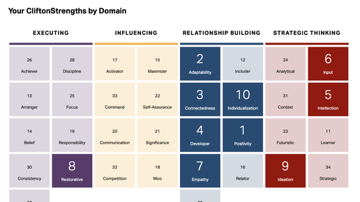 Свой первый тест Gallup / Clifton StrengthsFinder я прошел около 15 лет назад. В то время результаты тестирования были доступны только на английском языке. Я проходил тогда самую дешевую версию теста ($19,99 - она помогала выявить только ваши ТОП-5 талантов)...