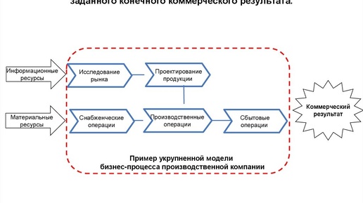 Бизнес-процесс - это упорядоченная во времени совокупность работ, предназначенная для получения заданного конечного коммерческого результата. Каждый бизнес-процесс предприятия направлен на достижение конкретной цели в иерархии всех целей компании. Согласованная иерархия целей компании является элементом стратегии компании и определяется глобальными целями компании. Первый принцип оптимизации бизнес-процессов: Каждый выход процесса должен согласован со входом  последующего, другими словами информация порождаемая первым процессом должна быть востребована вторым...