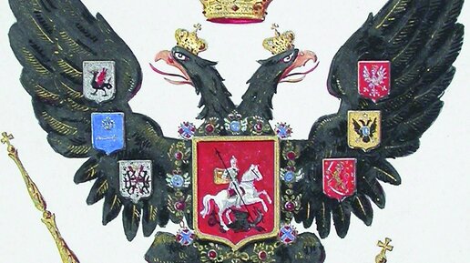 В конце 15-го века гербом России стал двуглавый орёл. За следующие четыре столетия его детали заметно изменились. Герб России до 19-го века Двуглавый орёл был выбран гербом Московского княжества во времена Ивана III (1462−1505). Тогда же на государственных печатях начали использовать изображение всадника (ездеца) — святого Георгия. С 16-го века гербом украшали конское убранство царей. Самый ранний образец относится к эпохе Ивана Грозного. В 17-м веке покровцы лошадей, идущих возле царской кареты, были украшены гербом России и гербами отдельных областей...