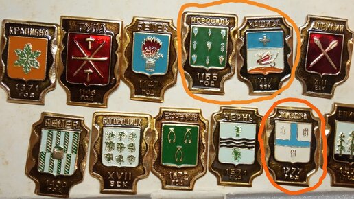 Потребовалось время, чтобы разобраться в этой ужасной ошибке. Что же произошло? А началось всё с красивого набора значков, который я хотел купить. Набор знаков, 12 штук. "Гербы городов Тульской области". Набор красивый, интересный. Но в нём есть две очевидные неточности и одна очень странная ошибка. Очевидные неточности - это Кашира и Новосиль. Эти города не входили в состав Тульской области. Кашира состояла в Тульской губернии, но была переведена в 1923 году в состав Московской губернии ещё до образования Тульской области...