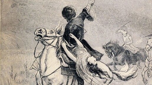 «К счастию, по причине неудачной охоты, наши кони не были измучены: они рвались из-под седла, и с каждым мгновением мы были все ближе и ближе... И наконец я узнал Казбича, только не мог разобрать, что такое он держал перед собою. Я тогда поравнялся с Печориным и кричу ему: «Это Казбич!» Он посмотрел на меня, кивнул головою и ударил коня плетью...
