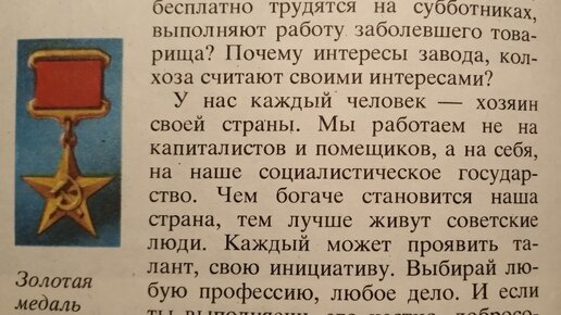 Почему в нашей стране люди работают с хорошим настроением, бесплатно трудятся на субботниках, выполняют работу заболевшего това-рища? Почему интересы завода, колхоза считают своими интересами? У нас каждый человек — хозяин своей страны...
