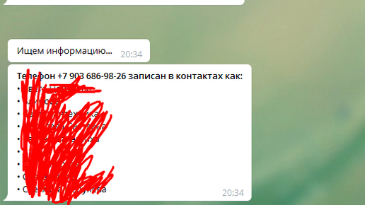 А именно через бота "Клерк" (@clerkinfobot) Пишем команду /phone И снизу выбираем кнопку "Как записан" И вот результат Ну подведём итоги.