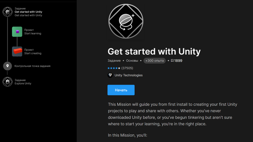 Я прошел 1 уровень. Если честно то рассказать даже особо не о чем. Можно сказать что это был вводный урок. В нем нам немного рассказали и показали что это за движок, отзывы разработчиков о нем, показали примеры того что можно сотворить. Первое задание состояло из одного вопроса который на мой взгляд придуман или по приколу или для особо одаренных. Звучит он так: "Установили ли вы Unity?" Дальше идут уже вопросы немного по серьезнее. Первая часть урока предлагает нам установить, обновить, а если максимально коротко то подготовится к запуску Unity...
