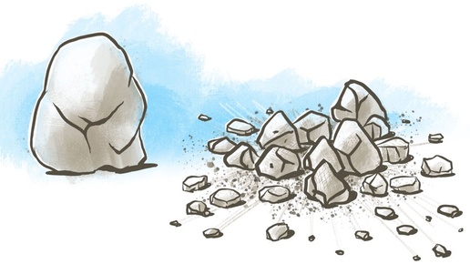 Например, возьмем этот большой камень и вот эту кучу щебня. Предположим, что когда-то этот щебень был большим камнем. С таким же весом, такой же общей массой, такого же цвета, из точно такого же материала...