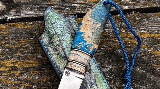 Вектор с авторскими ножнами, сталь S390, стабилизированный кап клена, мокуме-гане, стабилизированный зуб мамонта