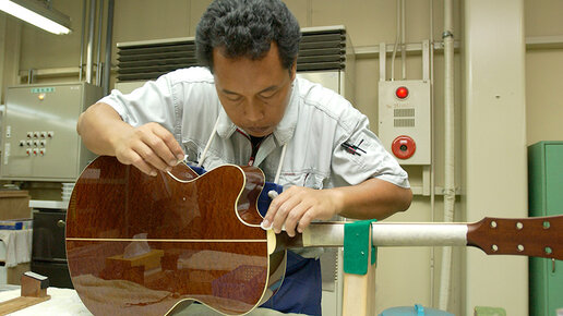 Ранее мы рассказывали про этапы изготовления гитары: от выбора древесины до нанесения покрытия и полировки гитары, которые придают ей красивый, привлекательный вид. После этого можно приступить к финальному этапу: соединение грифа и корпуса. Гитарный мастер следит за тем, чтобы гриф и корпус были плотно соединены и склеены. Это обеспечивает прочность конструкции и хорошую звукопередачу. Как крепятся гитарные лады После того, как гриф и корпус гитары становятся единым целым, в гриф вбиваются лады, изготовленные из никель-серебряного сплава...